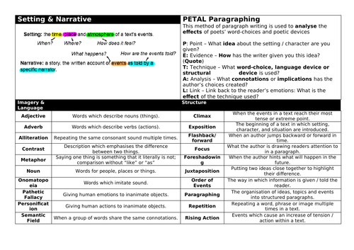Unseen Prose Knowledge Organiser. Often used as part of a larger text notably in narrative story writing. Like3 503 Downloads.